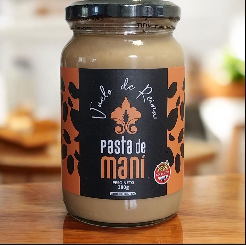 Alimento a base de pasta de mani en frasco de vidrio con tapa de metal hermética de 380 gr.
